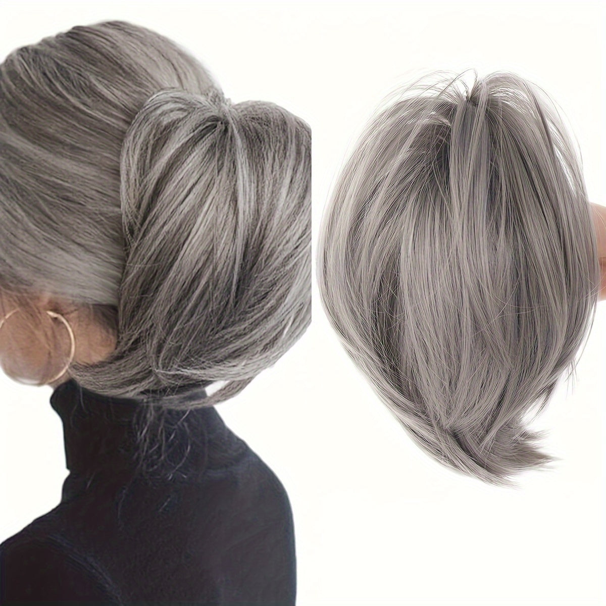 Elegant Messy Bun Hair Clip for Women - 20.32cm Synthetic Straight Ponytail Extension, Black Donut Chignon with Hairpin Comb, Versatile & Heat-Resistant