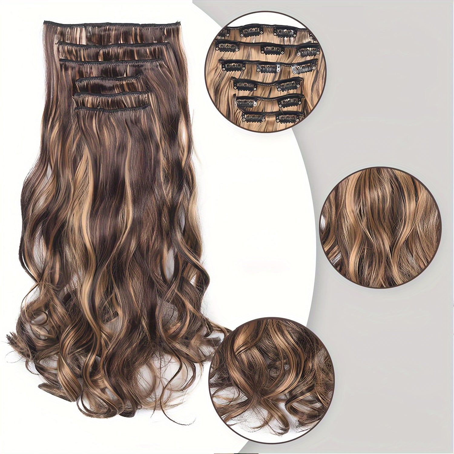 Clip-In Long Wavy Synthetic Hair Extension 20 Inches - Deep Brown & Light Brown Thick Voluminous Curly Wave Hairpiece for Women, Natural Look for Daily Wear & Special Occasions, Versatile Hairpiece, Secure Clip Attachment