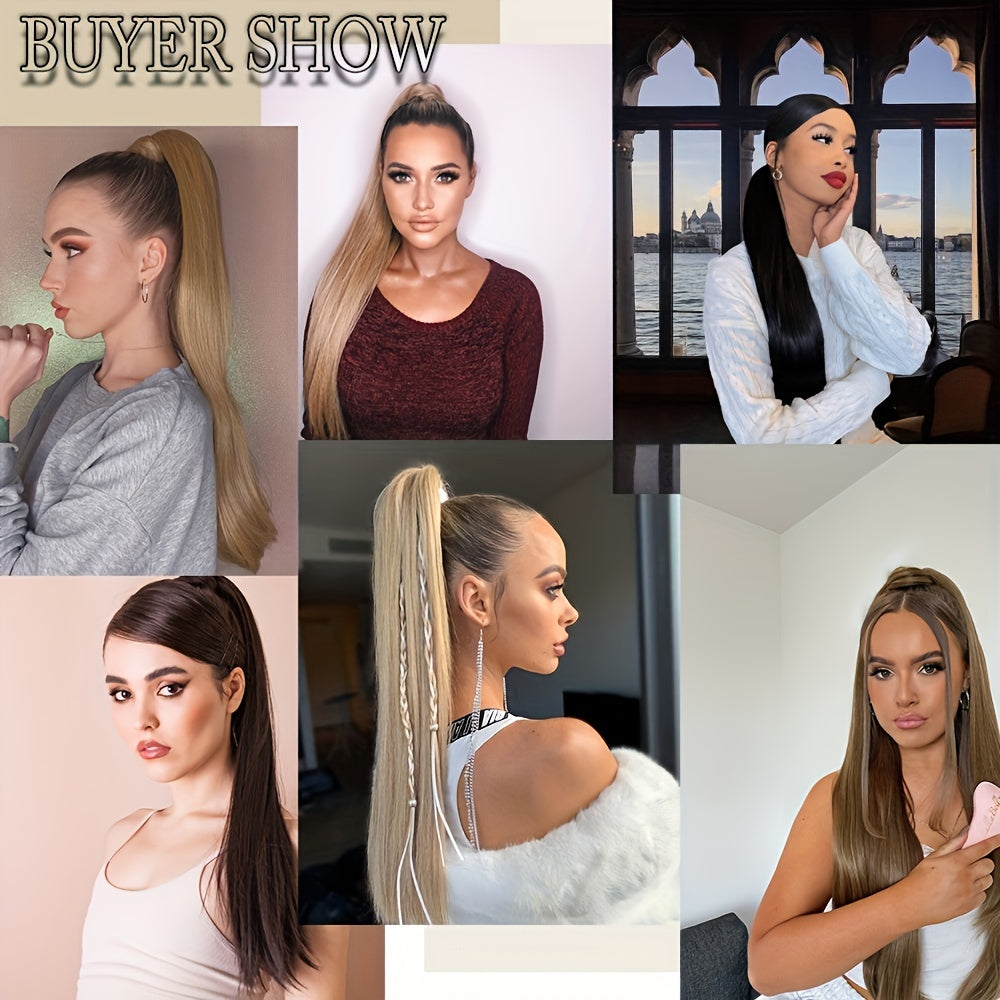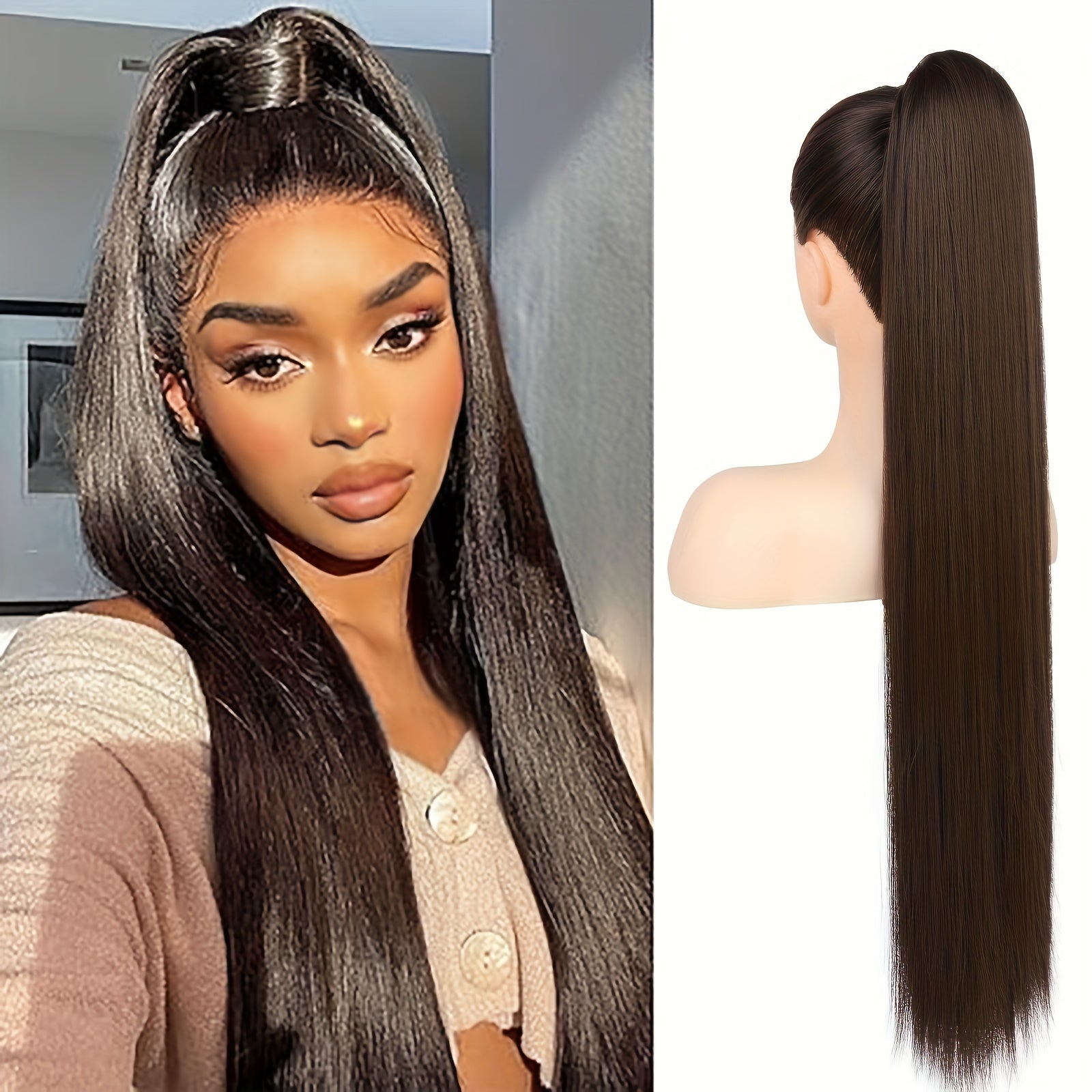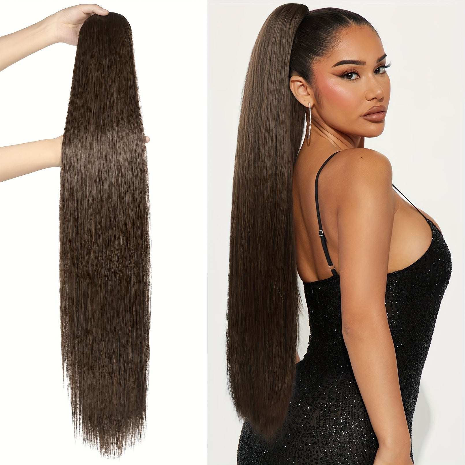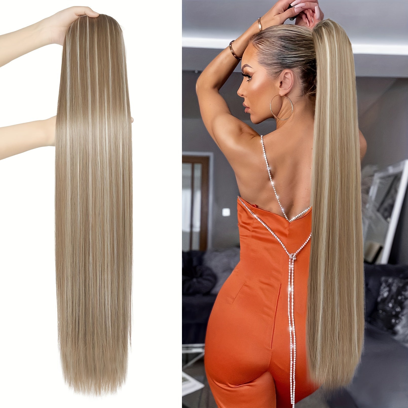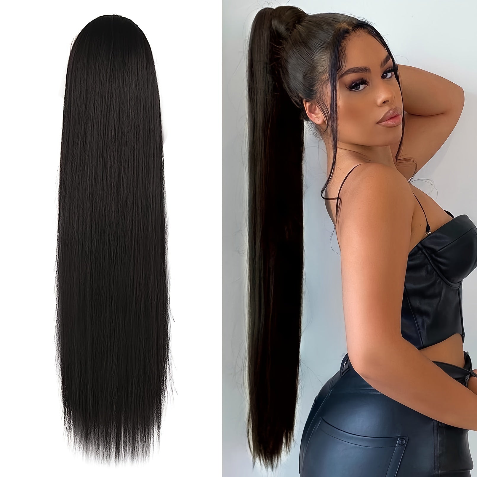 91.44cm Long Ponytail Hair Extensions, 91.44 cm Long Straight Drawstring Ponytail Synthetic Fake Ponytail Soft Clip-In Hair Extensions Ponytail Women's Daily Wear Holiday Party Wear Halloween Christmas