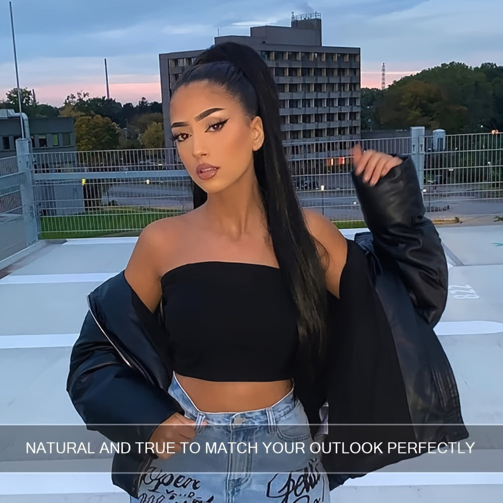 91.44cm Long Ponytail Hair Extensions, 91.44 cm Long Straight Drawstring Ponytail Synthetic Fake Ponytail Soft Clip-In Hair Extensions Ponytail Women's Daily Wear Holiday Party Wear Halloween Christmas