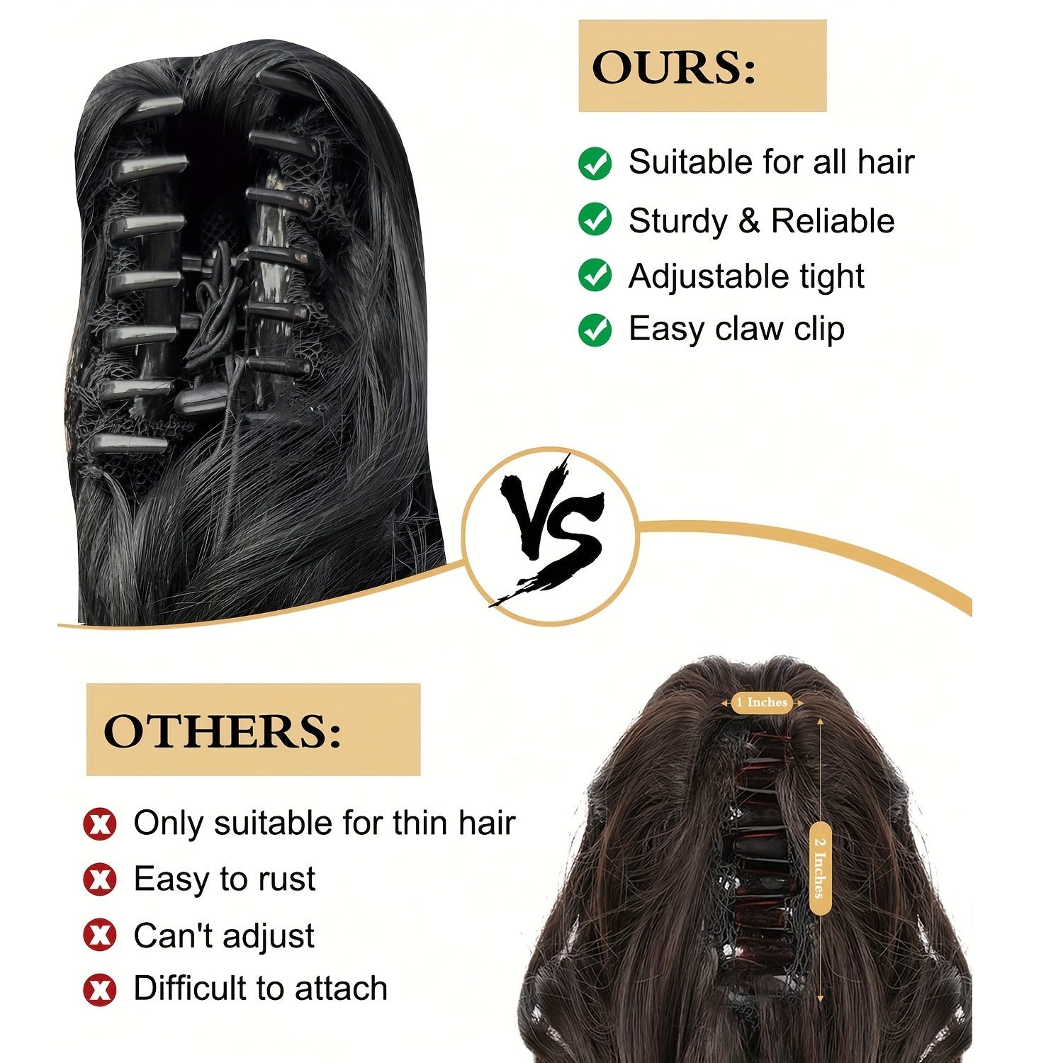 Claw Ponytail Extension 24 inch Water Wave big Wavy Curly Clip in Hair Extensions Soft Looking Synthetic Hairpiece for Women black with red