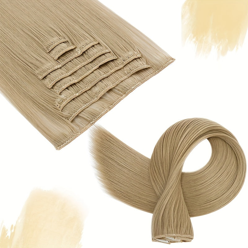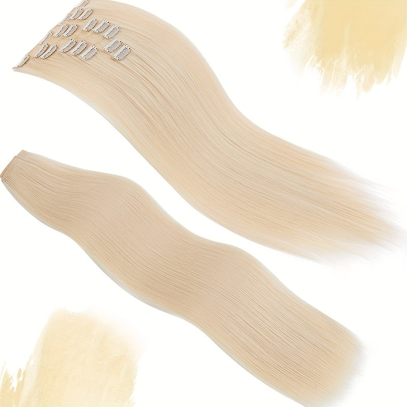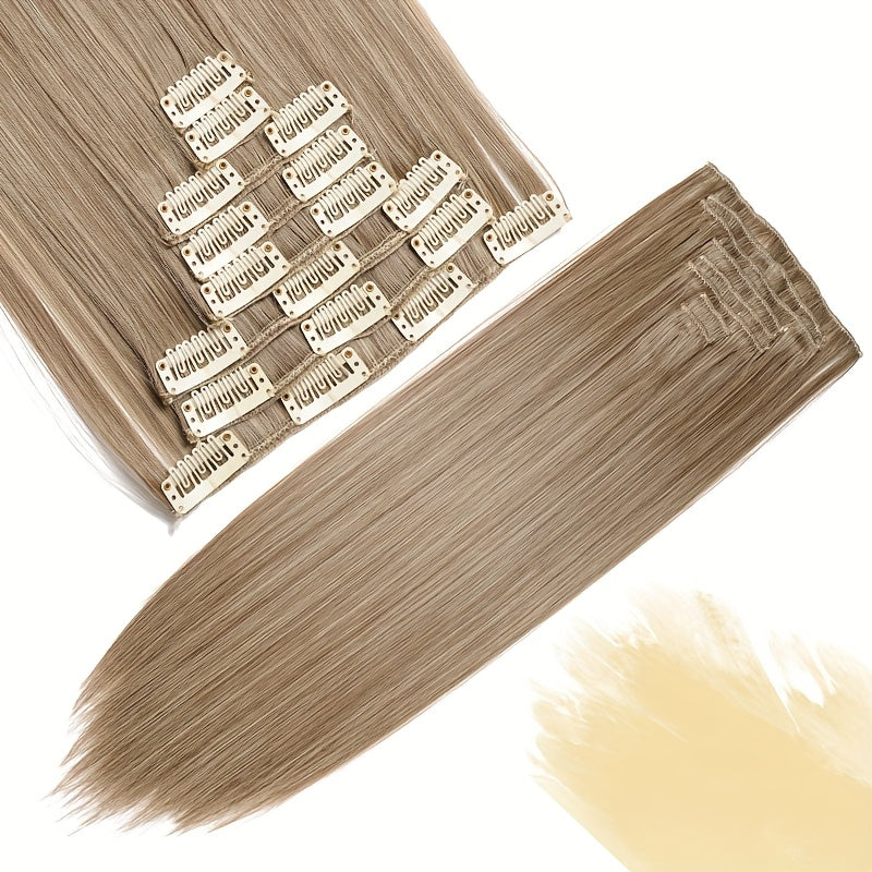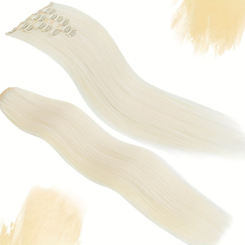 8pcs/Set Clip In Hair Extensions Straight 23inch/58cm Long Thick Synthetic Hair Piece High Temperature Fiber Double Weft Heat Resistant Fiber 8pcs Full Head Clip In Hairpieces Highlight Pure Colors for Women Daily Party Festival Gift