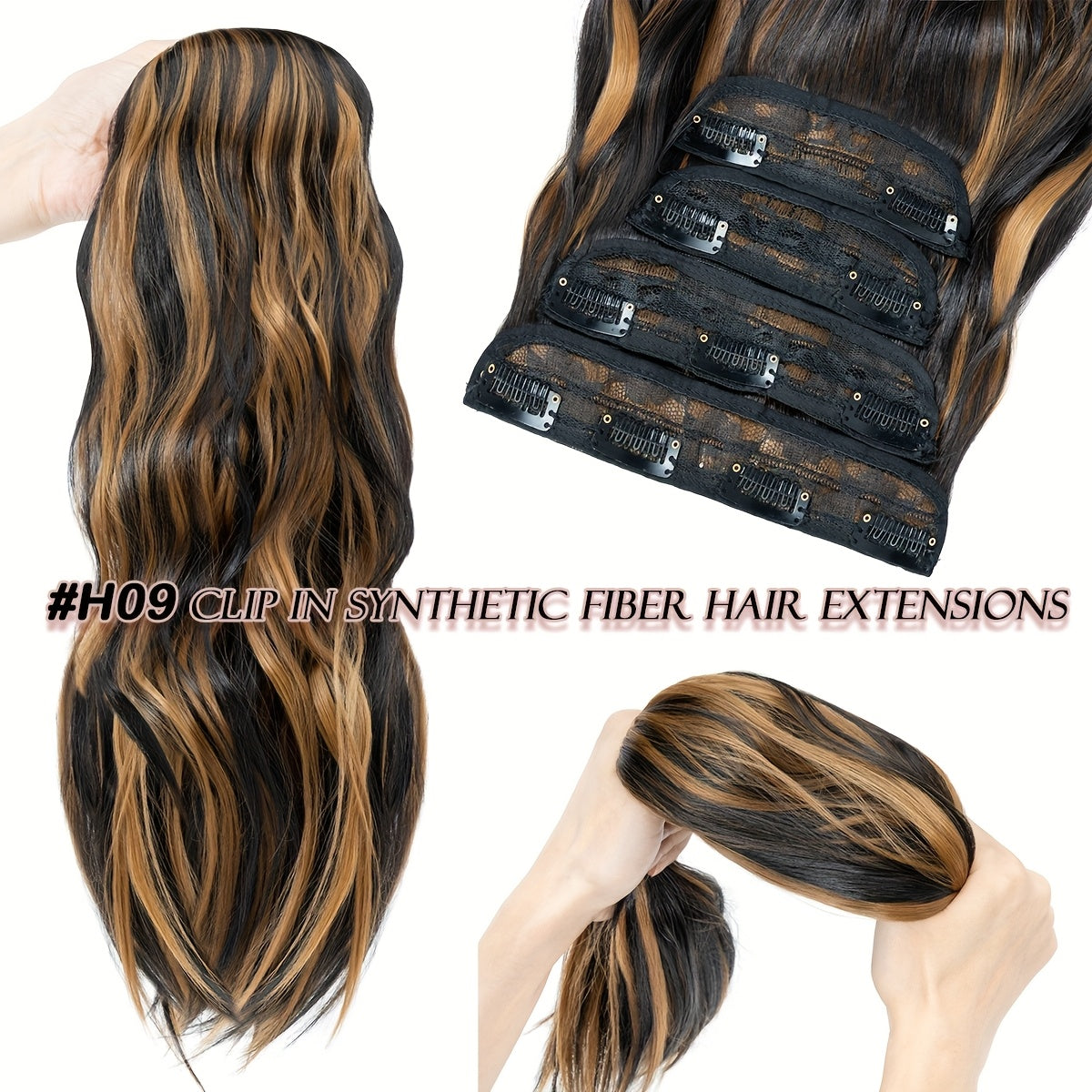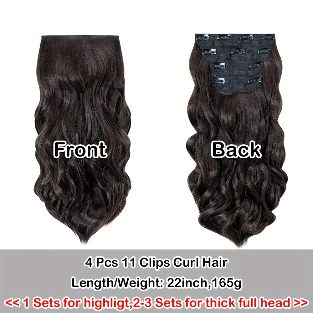 Clip In Hair Extensions Synthetic Fiber Hair, 55.88 cm 185g 4pcs 11clips Clip In Synthetic Hair Coloured Remy Long Kinky Curly Natural Soft Hairpieces For Women, Use For Daily Party, Wedding, Outgoing To Add Volumn To Show Your Beauty